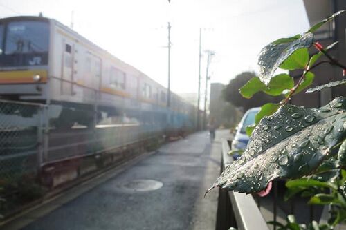 今朝は思ったより雨が引っ張りましたね。 でも、傘なしで出かけたら微妙に負けた気分。 柿がなっている脇を列車が通る。 ちょっと低速シャッターで。 2012年11月 東京都 稲城市 Canon PowerShot S100