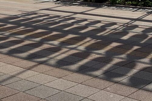 木の合間から公園の入り口のついたてに光がさしていた デザインちっくなそれは、歩道に影絵を落としていた 2025年2月21日 東京都文京区