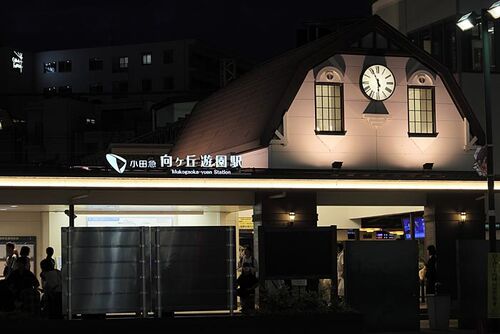 今日も昨日ほどではないけど暑かったです。 夕方夕陽を求めていたのですが、結局曇り空。 日が暮れた後、向ヶ丘遊園駅を通ると綺麗にライトアップしていました。 モダンな雰囲気の建物が小田急では珍しいかも。